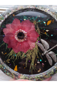 This one of a kind circular resin dish with dried florals is truly a statement piece. It is 8 inches around in diameter.