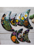 Each moon is created with mixed florals, gold leaf and various glitters.
