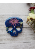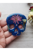 Navy Blue One of a Kind Sparkly Botanical Skull Statement Necklace