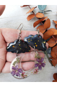 Storm Cloud Flower Moon Statement Dangle Earrings with Verbena and Pink Heather